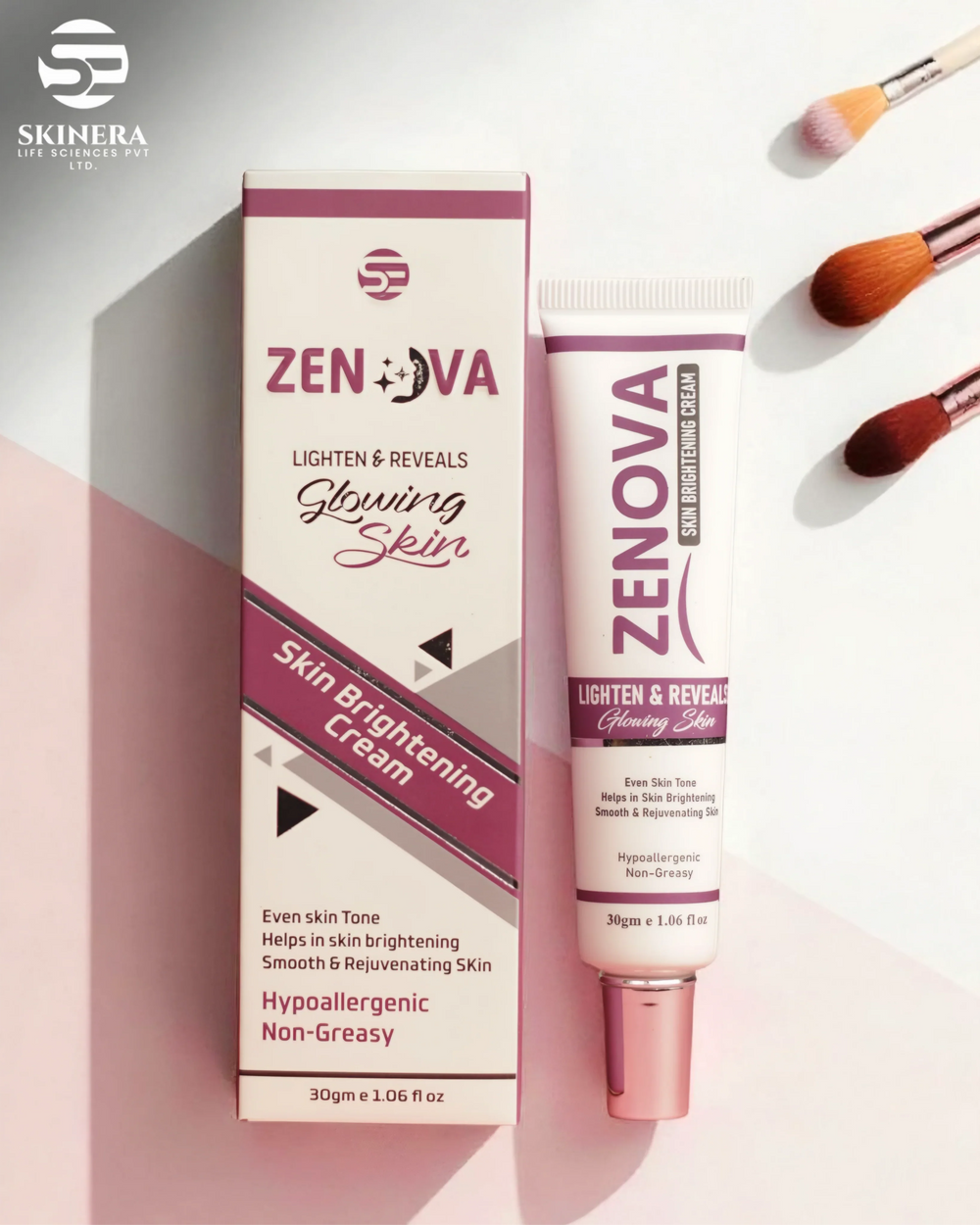 Zenova Skin Brightening Cream is a luxurious, dermatologically tested formula crafted to brighten, hydrate, and even out your skin tone. Enriched with a powerful blend of clinically proven brightening agents and antioxidants, it helps fade dark spots, pigmentation, and dullness — revealing a visibly radiant, smooth, and youthful complexion.